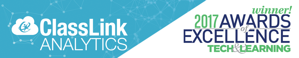 Clifton, NJ – November 21, 2017 – ClassLink, the leading single sign-on solution for K-12 and Higher-Ed announced that its new product, ClassLink Analytics, was recognized by the 2017 Tech & Learning Awards of Excellence. A panel of Tech & Learning qualified educators reviewed hundreds of entries to determine the winners of the Creative New Offerings and Significantly Updated Products categories. Evaluation criteria include quality and effectiveness, ease of use, creative use of technology, and suitability for use in a school environment.